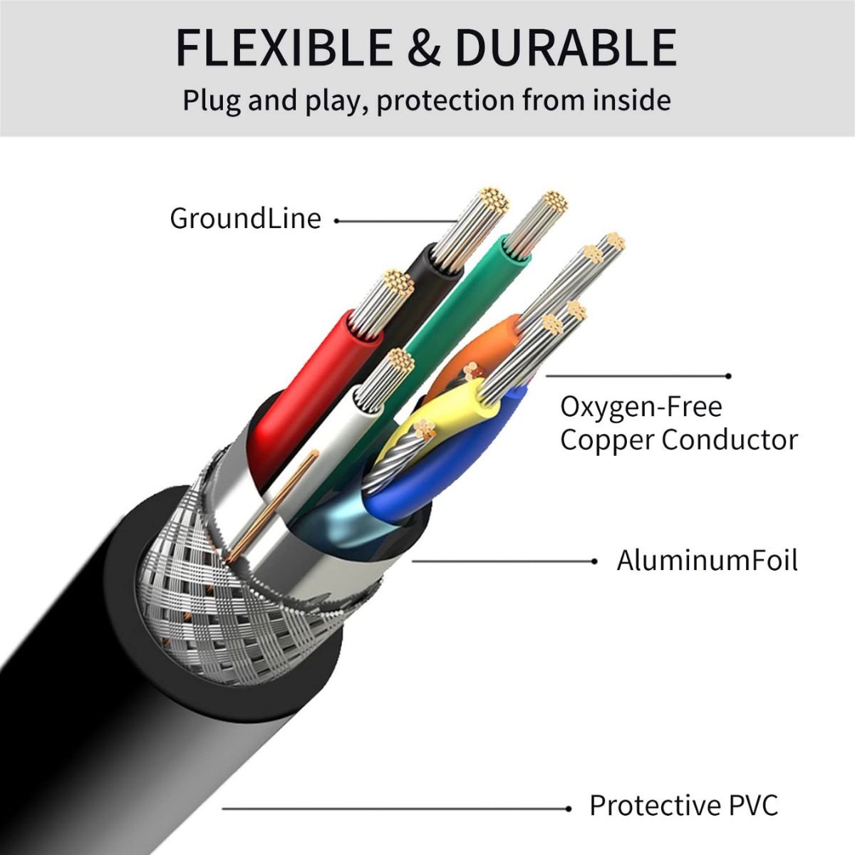 CONSTRUCCIÓN DE ALTA CALIDAD: Conectores reforzados que aseguran una conexión estable y duradera, resistiendo el uso diario.
